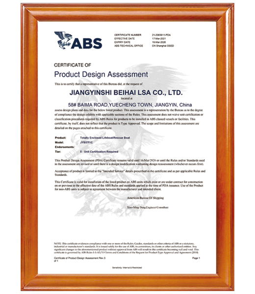 江陰市北海救生設(shè)備有限公司是一家專注于高性能船艇,救生/救助艇,水面無(wú)人艇,和收放裝置的設(shè)計(jì)、研發(fā)、生產(chǎn)、銷售及服務(wù)的有限公司;公司具有一級(jí)Ⅱ類纖維增強(qiáng)塑料船舶生產(chǎn)資質(zhì),二級(jí)鋁質(zhì)船舶生產(chǎn)企業(yè)資質(zhì)和三級(jí)Ⅱ類鋼質(zhì)船舶生產(chǎn)資質(zhì)。